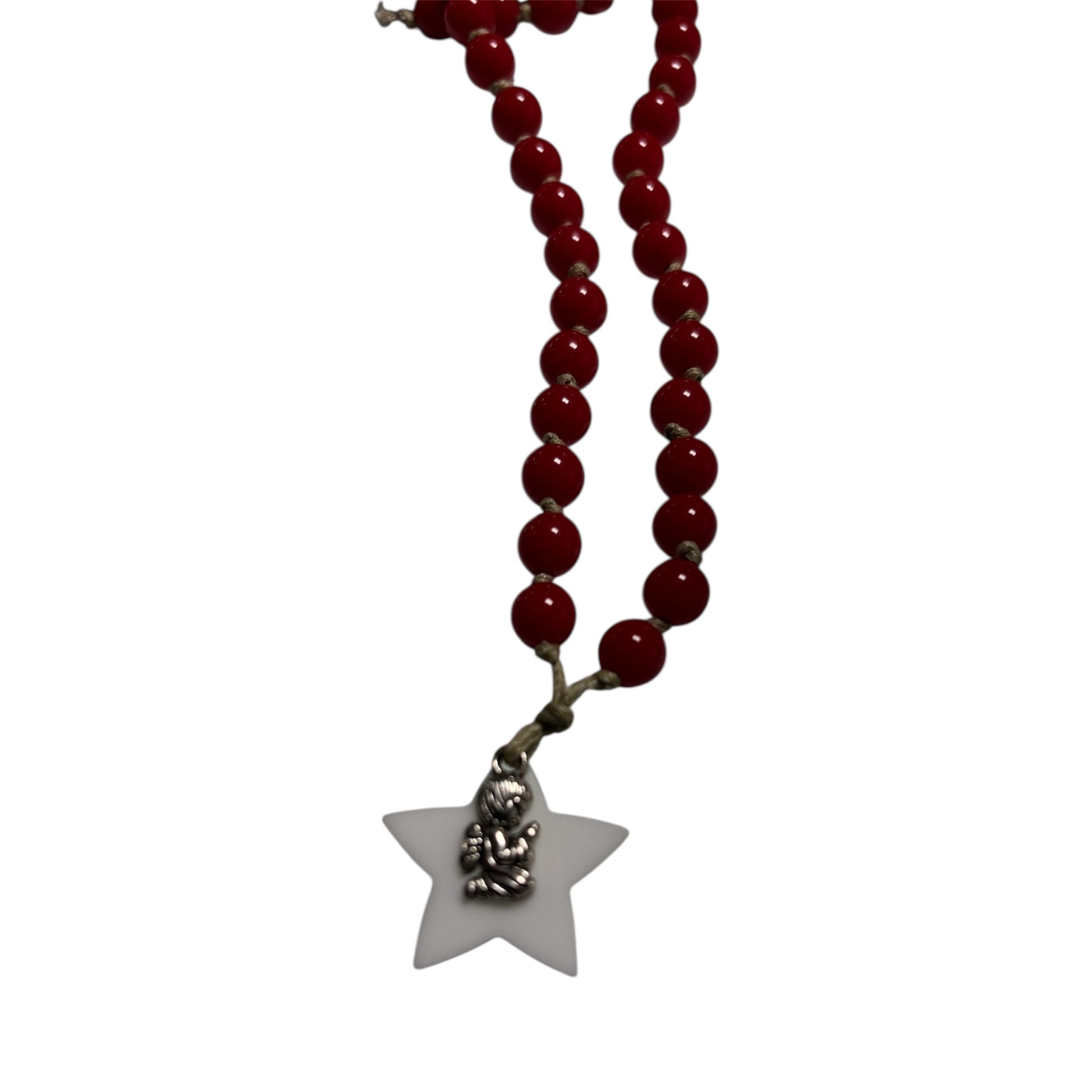 Este colar em acrílico com estrela e anjinho é a escolha perfeita para peças clássicas e sofisticadas. Com o seu design encantador e acabamento resistente, traz um toque de elegância a qualquer ocasião especial.